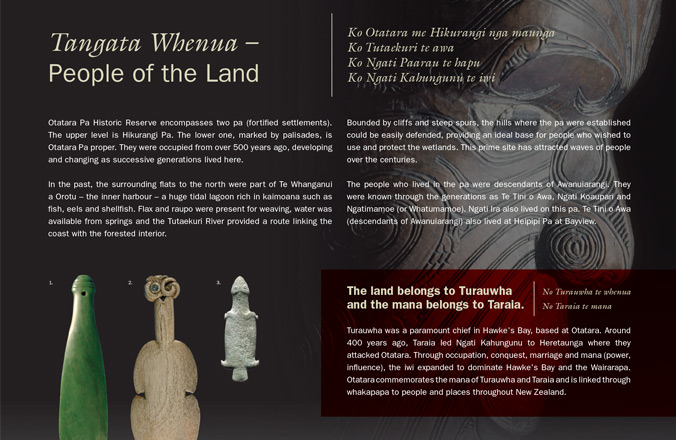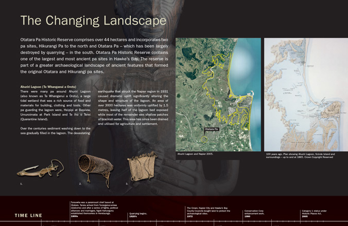 Otatara Pa Historic Reserve is a large reserve jointly managed by DoC and Ngati Paarau of Waiohiki Marae. It consists of two pa sites and is one of the largest and most significant pa in New Zealand. Geometria undertook a site survey to update the archaeological recording and produced interpretation for installations at the site. Over 250 archaeological features were identified and mapped using a combination of aerial photogrammetry, detailed orthography, total station and RTK-GPS survey. Damage mapping was also undertaken to ascertain the extent of degradation to the site and establish base datasets for ongoing monitoring and management of the site. Interpretive panels have been installed in the new waharoa (entrance) to the site.